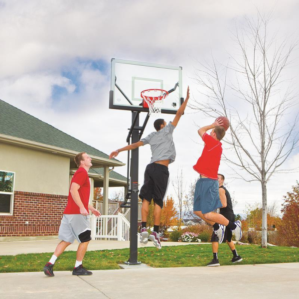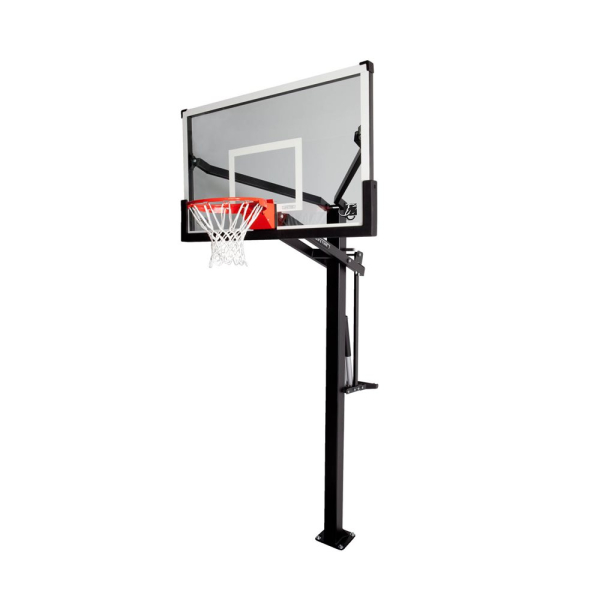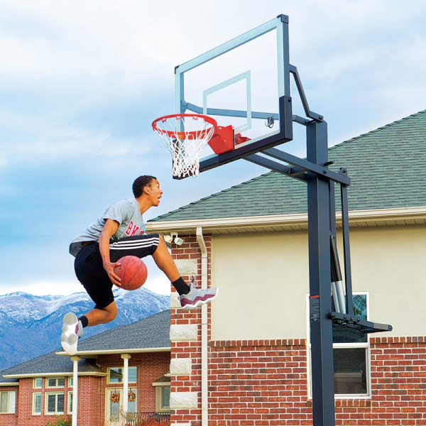 Профессиональная баскетбольная стойка имеет большую заднюю панель диагональю 137 см из закаленного стекла. Это гарантирует долговечность и ударопрочность. Кроме того, в стойке используется технология плавной регулировки высоты тарелки Mammoth Pump® в диапазоне от 229 до 305 см.
