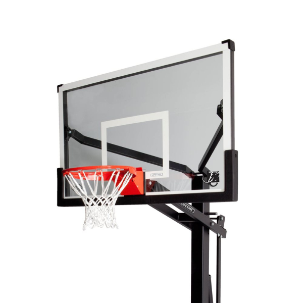 Профессиональная баскетбольная стойка имеет большой щит диаметром 152 см из закаленного стекла. Это гарантирует долговечность и ударопрочность. Кроме того, в стойке используется технология плавной регулировки высоты кольца Mammoth Pump® в диапазоне от 229 до 305 см. Все это дополнено прочным кольцом Spring-Flex® и атмосферостойкой нейлоновой сеткой и квадратным столбом длиной 12,7 см.
