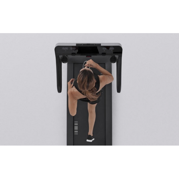 Максимум удобства при минимальной опорной поверхности. Несмотря на свои скромные габариты и малую опорную площадь (в которой находится спортсмен во время тренировки), MYRUN TECHNOGYM невероятно комфортен для занятий бегом в помещении. Беговая платформа почти полностью бесшумна, даже при скорости порядка 19 километров в час! При этом поверхность не просто регулируемая: она сама адаптируется в вашей технике бега, подстраивается под неё для того, чтобы свести к минимуму риск каких- либо травм.