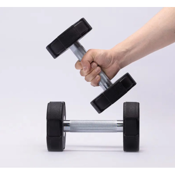 Завдяки точному балансу та зручному хвату гантеля допомагає ефективно розвивати м’язи рук, грудей, плечей і спини.