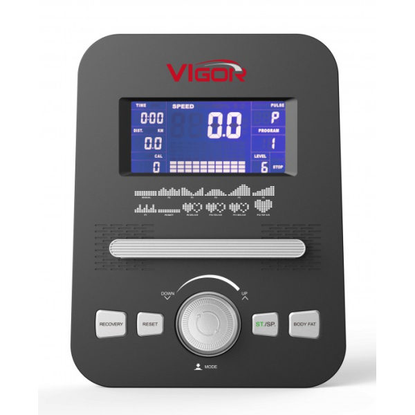 Орбітрек Vigor Skywalk F2P оснащений LED-дисплеєм з розширеним функціоналом. Користувач має доступ до 12 мотивуючих програм, які допомагають урізноманітнити заняття та зробити їх більш ефективними.
