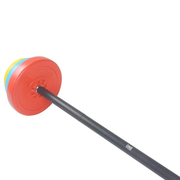 SDB20 ONE FITNESS - штанга для тела - идеальное решение для групповых и индивидуальных тренировок. Комплект состоит из витой шейки с 3-мя частями, 3-х пар пластин с разными нагрузками и зажимов-бабочек.