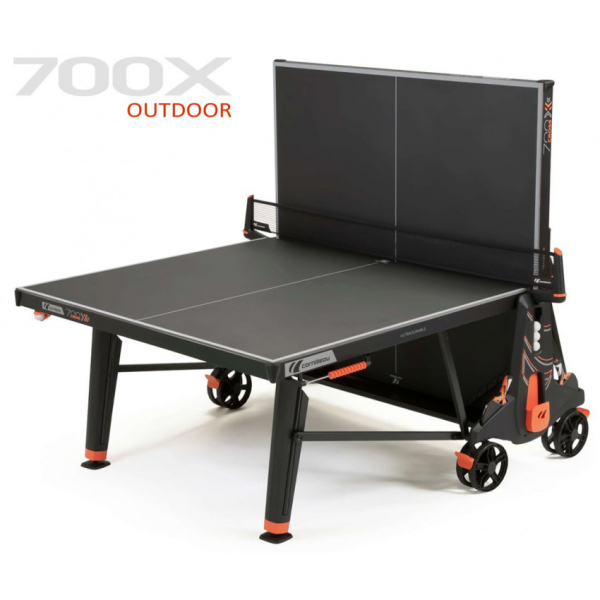 Теннисный стол для улицы 700X—лучший складной всепогодный стол, изготовленный компанией Cornilleau. Эта модель предназначена для использования на улице в любую погоду, тем не менее её игровая поверхность имеет толщину целых 9мм с поддерживающей рамой с профилем 60мм, что делает игру на этом теннисном столе практически неотличимой от игры на столе с деревянной столешницей. Углы стола защищены от ударов, а поверхность имеет антибликовое покрытие MATTOP, что облегчит жизнь играющим при игре на солнце.